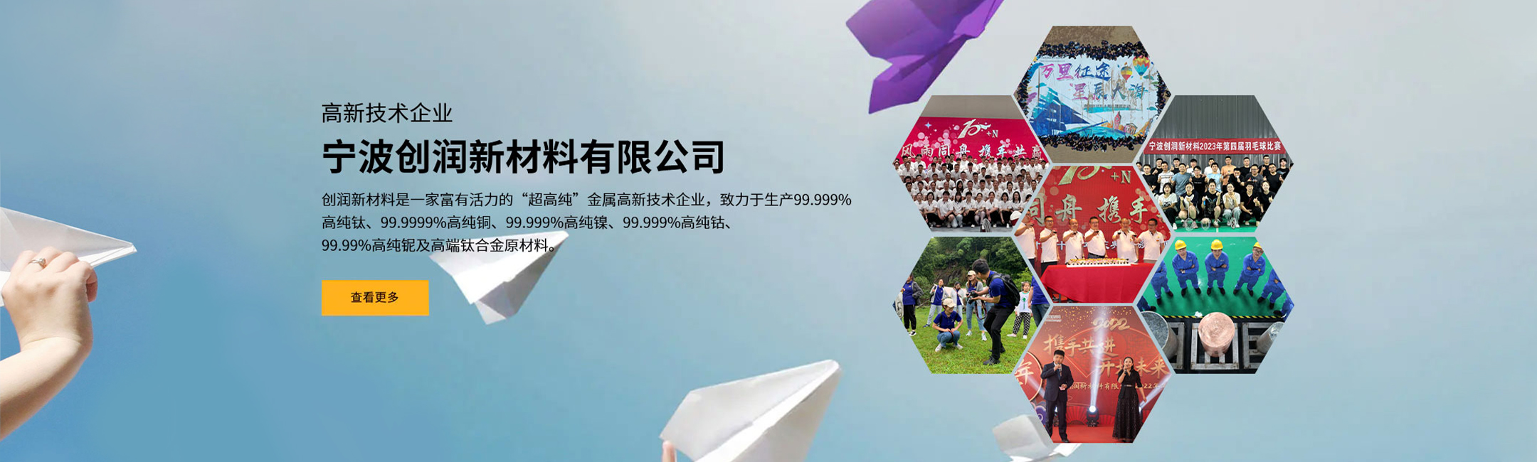 創(chuàng)潤(rùn)新材料是一家富有活力的“超高純”金屬高新技術(shù)企業(yè),致力于生產(chǎn)超高純金屬原材料。產(chǎn)品涉及半導(dǎo)體靶材,航空發(fā)動(dòng)機(jī),生物醫(yī)療用高純金屬, 軍工用特殊性能材料等。是國(guó)內(nèi)唯一的超高純鈦金屬產(chǎn)業(yè)生產(chǎn)基地,使中國(guó)躋身為世界上僅有的三個(gè)擁有該技術(shù)和產(chǎn)線的國(guó)家之一。經(jīng)過(guò)多年的市場(chǎng)開拓與客戶驗(yàn)證,創(chuàng)潤(rùn)逐步形成了超高純鈦、銅、鎳、鈷、鈮及高端鈦合金產(chǎn)品體系。